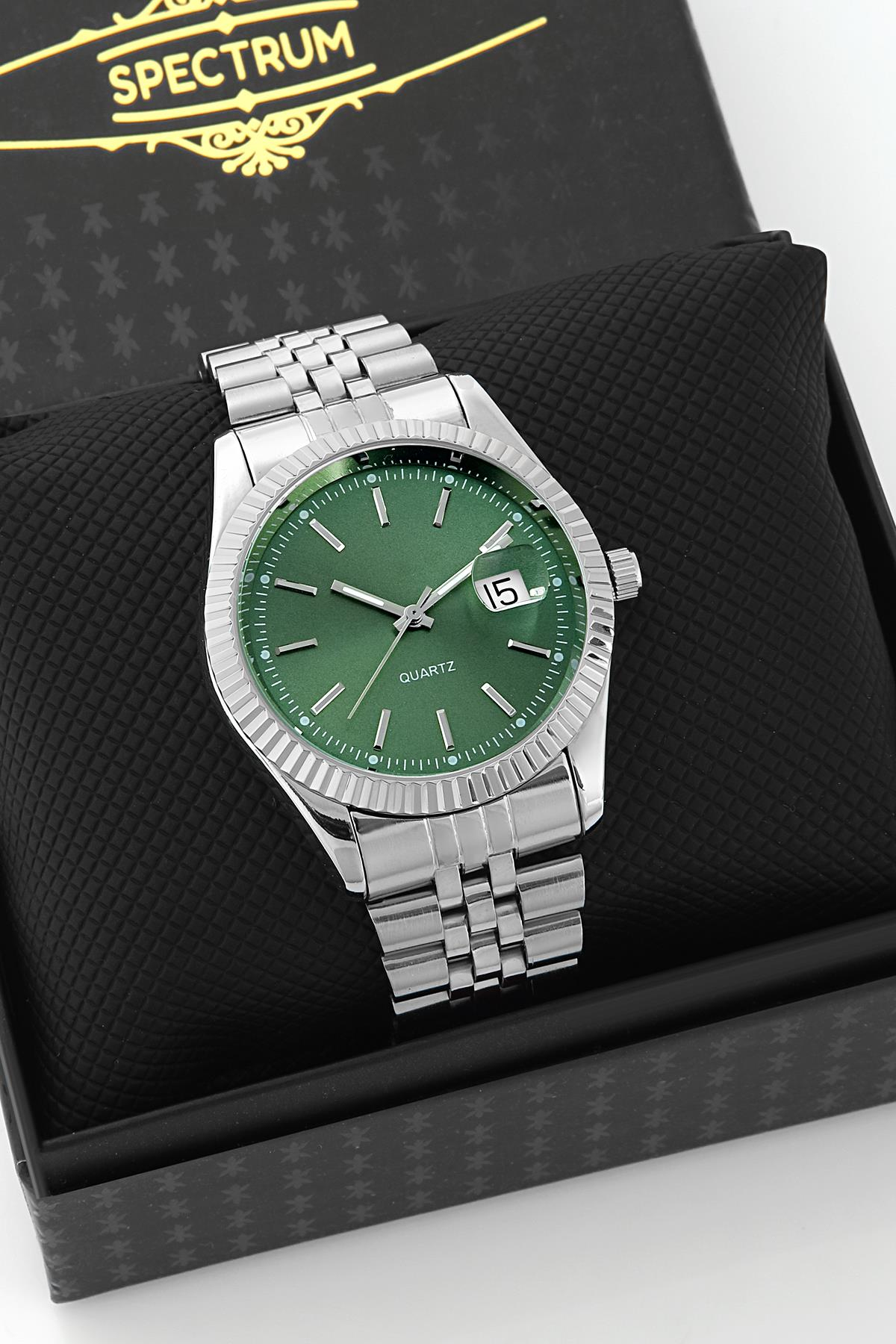 - Kasa Çapı : 40 MM , Kordon Rengi : Gümüş , Kadran Rengi : Yeşil , Kordon Materyali : Çelik , Kasa Materyali : Metal
